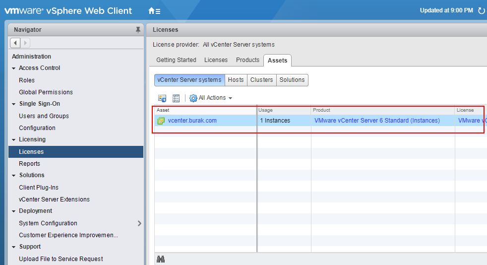 vCenter Server System altında eklemiş olduğumuz lisansı görüyoruz.